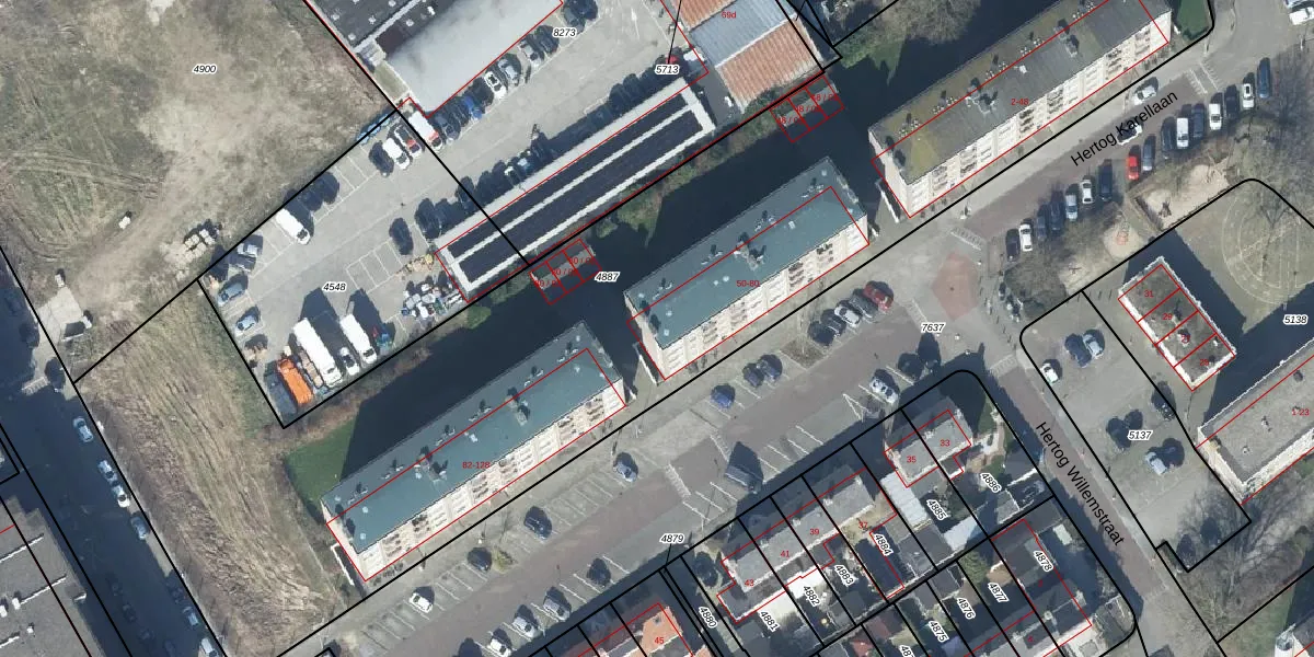 Het perceel waarop Hertog Karellaan 76 staat heeft een oppervlakte van 5790 m². Dit is een zeer groot perceel. De perceeloppervlakte wordt geregistreerd door het Kadaster. Gedetailleerde informatie over de maten van dit perceel kunt u vinden in het rapport Kadastrale kaart met maatvoering van Hertog Karellaan 76.