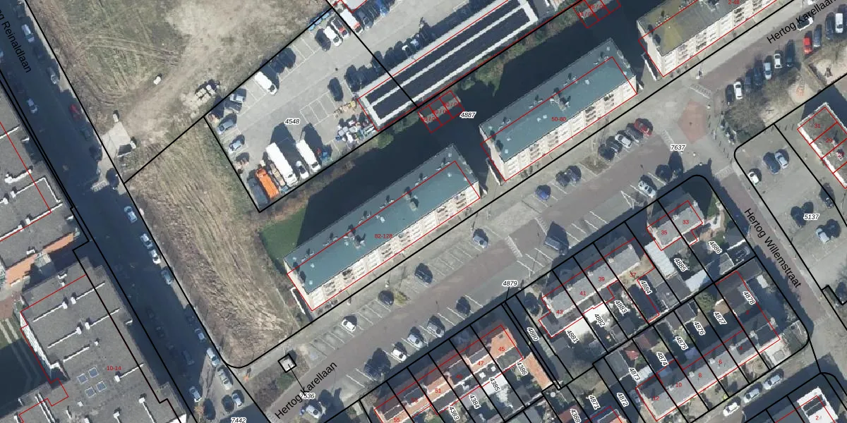 Het perceel waarop Hertog Karellaan 88 staat heeft een oppervlakte van 5790 m². Dit is een zeer groot perceel. De perceeloppervlakte wordt geregistreerd door het Kadaster. Gedetailleerde informatie over de maten van dit perceel kunt u vinden in het rapport Kadastrale kaart met maatvoering van Hertog Karellaan 88.