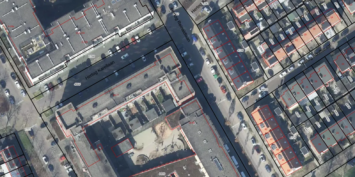 Het perceel waarop Hertog Reinaldlaan 38 staat heeft een oppervlakte van 9276 m². Dit is een zeer groot perceel. De perceeloppervlakte wordt geregistreerd door het Kadaster. Gedetailleerde informatie over de maten van dit perceel kunt u vinden in het rapport Kadastrale kaart met maatvoering van Hertog Reinaldlaan 38.