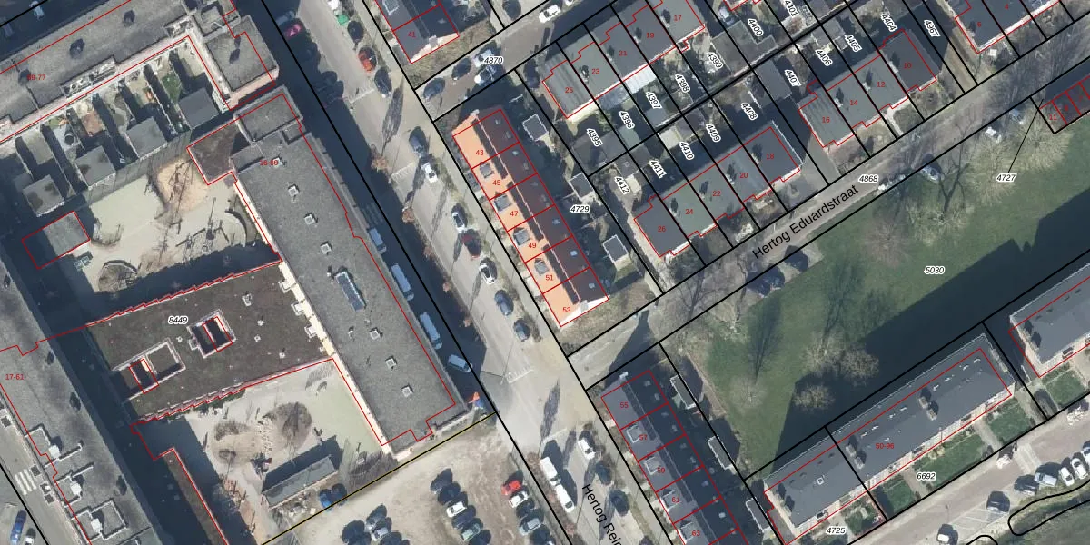 Het perceel waarop Hertog Reinaldlaan 51 staat heeft een oppervlakte van 980 m². Dit is een groot perceel. De perceeloppervlakte wordt geregistreerd door het Kadaster. Gedetailleerde informatie over de maten van dit perceel kunt u vinden in het rapport Kadastrale kaart met maatvoering van Hertog Reinaldlaan 51.