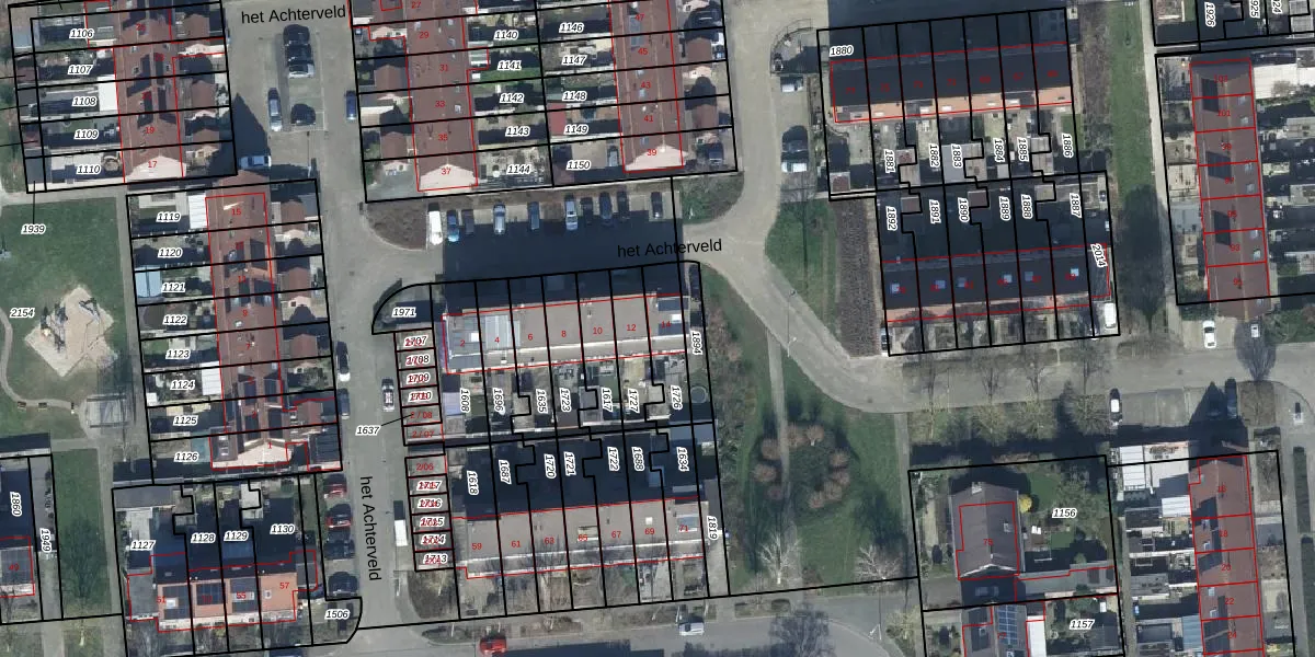 het Achterveld 14 is gelegen op kadastraal perceel TIE00G1726. Deze kadastrale aanduiding is uniek en wordt gebruikt door het Kadaster om eigendomsrechten en andere zakelijke rechten vast te leggen. Het perceel maakt onderdeel uit van de kadastrale gemeente Tiel.