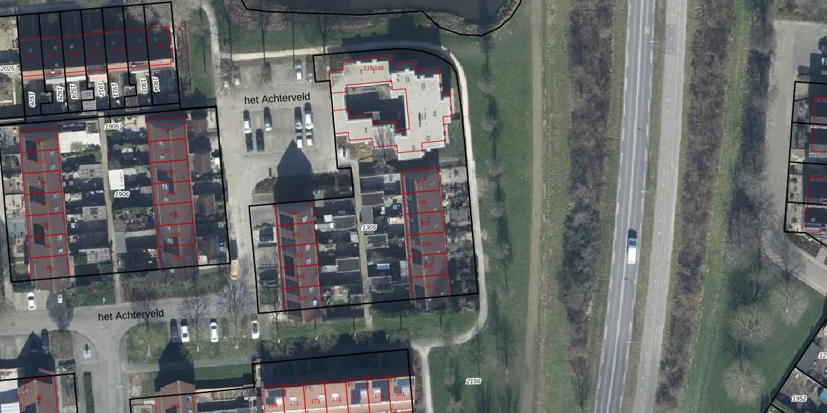 het Achterveld 149 is gelegen op kadastraal perceel TIE00G1305. Deze kadastrale aanduiding is uniek en wordt gebruikt door het Kadaster om eigendomsrechten en andere zakelijke rechten vast te leggen. Het perceel maakt onderdeel uit van de kadastrale gemeente Tiel.