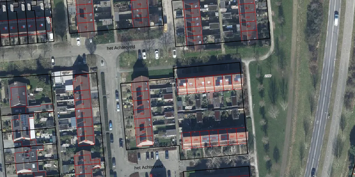 het Achterveld 169 is gelegen op kadastraal perceel TIE00G1164. Deze kadastrale aanduiding is uniek en wordt gebruikt door het Kadaster om eigendomsrechten en andere zakelijke rechten vast te leggen. Het perceel maakt onderdeel uit van de kadastrale gemeente Tiel.