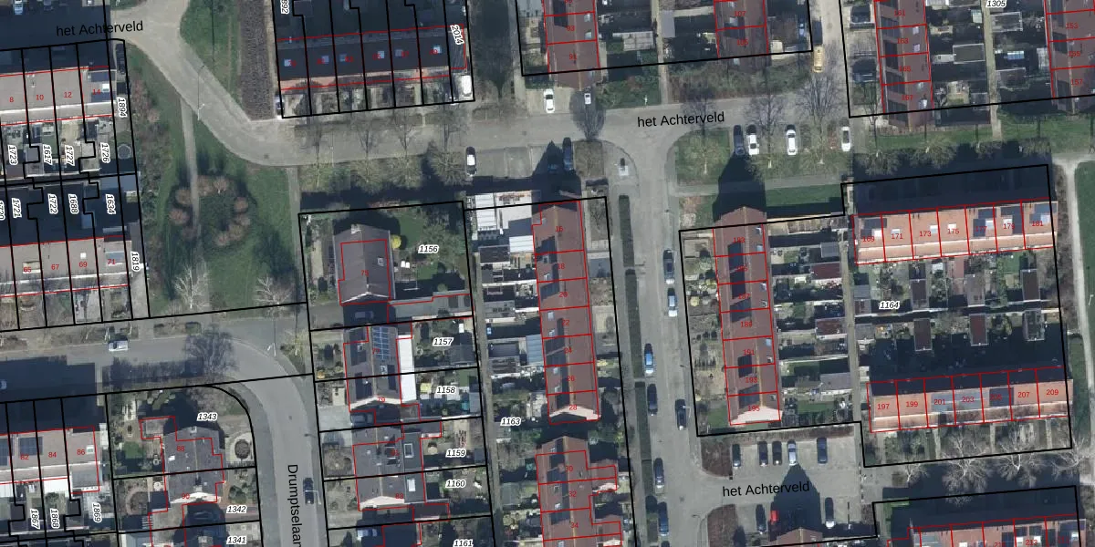 het Achterveld 18 is gelegen op kadastraal perceel TIE00G1163. Deze kadastrale aanduiding is uniek en wordt gebruikt door het Kadaster om eigendomsrechten en andere zakelijke rechten vast te leggen. Het perceel maakt onderdeel uit van de kadastrale gemeente Tiel.