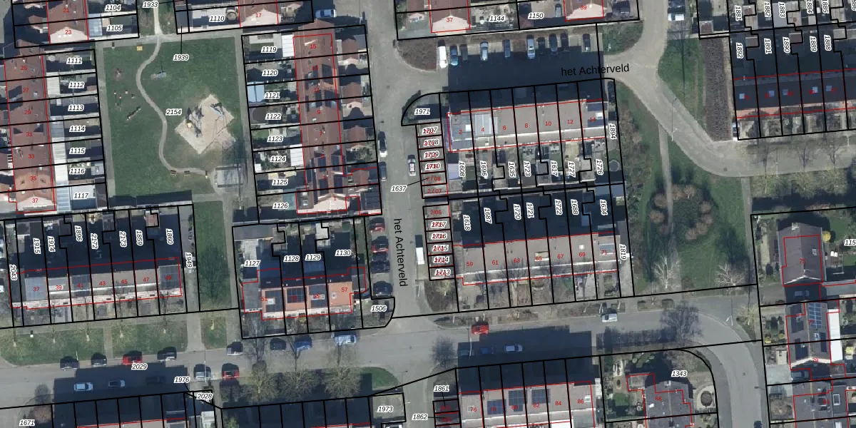 Het perceel waarop het Achterveld 2-06 staat heeft een oppervlakte van 199 m². Dit is een middelgroot perceel. De perceeloppervlakte wordt geregistreerd door het Kadaster. Gedetailleerde informatie over de maten van dit perceel kunt u vinden in het rapport Kadastrale kaart met maatvoering van het Achterveld 2-06.