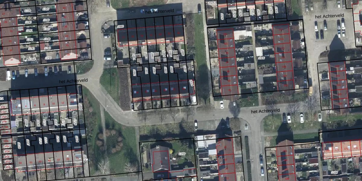 het Achterveld 89 is gelegen op kadastraal perceel TIE00G1887. Deze kadastrale aanduiding is uniek en wordt gebruikt door het Kadaster om eigendomsrechten en andere zakelijke rechten vast te leggen. Het perceel maakt onderdeel uit van de kadastrale gemeente Tiel.