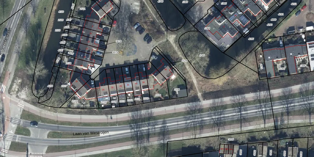 Het perceel waarop het Ooievaarsnest 36 staat heeft een oppervlakte van 255 m². Dit is een middelgroot perceel. De perceeloppervlakte wordt geregistreerd door het Kadaster. Gedetailleerde informatie over de maten van dit perceel kunt u vinden in het rapport Kadastrale kaart met maatvoering van het Ooievaarsnest 36.