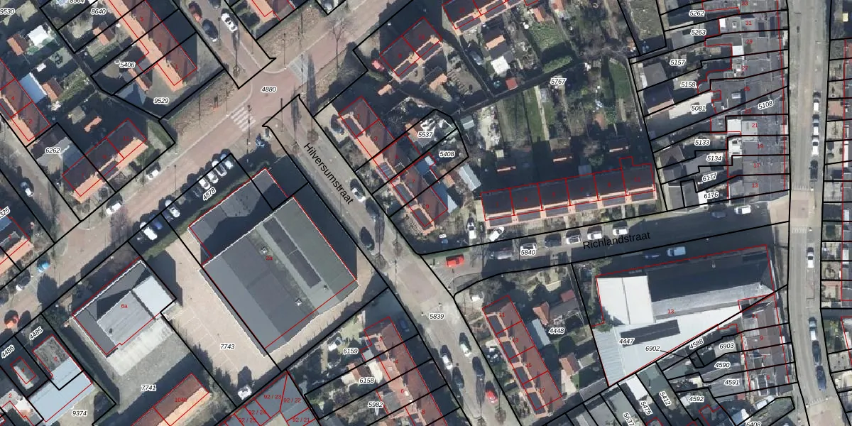 Hilversumstraat 9 is gelegen op kadastraal perceel TIE00C5767. Deze kadastrale aanduiding is uniek en wordt gebruikt door het Kadaster om eigendomsrechten en andere zakelijke rechten vast te leggen. Het perceel maakt onderdeel uit van de kadastrale gemeente Tiel.