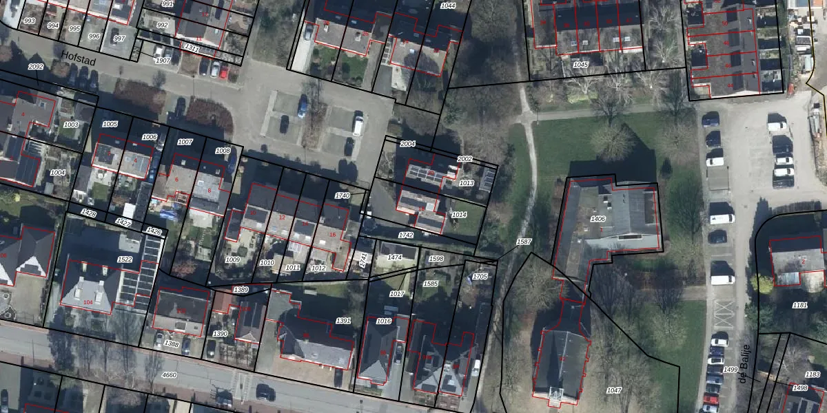 Het perceel waarop Hofstad 18 staat heeft een oppervlakte van 265 m². Dit is een middelgroot perceel. De perceeloppervlakte wordt geregistreerd door het Kadaster. Gedetailleerde informatie over de maten van dit perceel kunt u vinden in het rapport Kadastrale kaart met maatvoering van Hofstad 18.