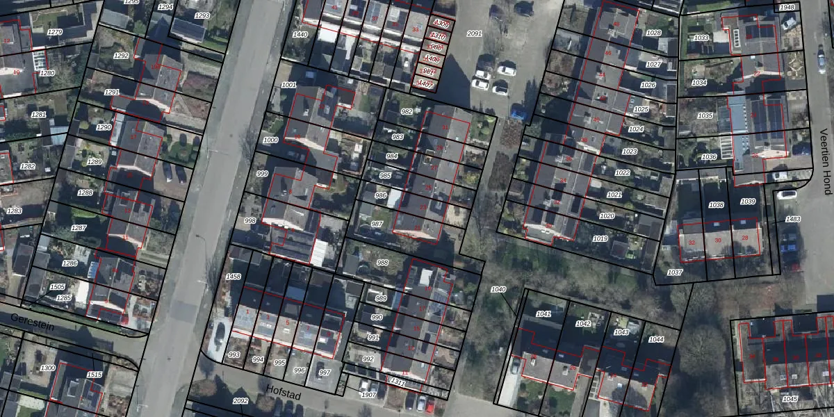 Hofstad 23 is gelegen op kadastraal perceel TIE00G986. Deze kadastrale aanduiding is uniek en wordt gebruikt door het Kadaster om eigendomsrechten en andere zakelijke rechten vast te leggen. Het perceel maakt onderdeel uit van de kadastrale gemeente Tiel.