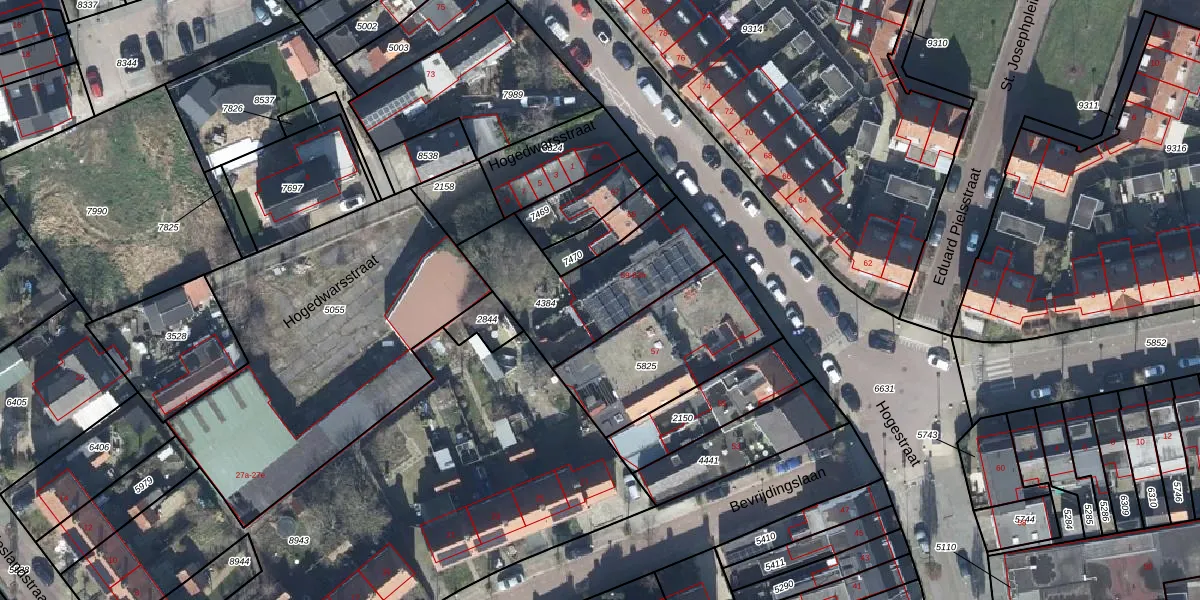 Het perceel waarop Hogestraat 63-f staat heeft een oppervlakte van 555 m². Dit is een groot perceel. De perceeloppervlakte wordt geregistreerd door het Kadaster. Gedetailleerde informatie over de maten van dit perceel kunt u vinden in het rapport Kadastrale kaart met maatvoering van Hogestraat 63-f.