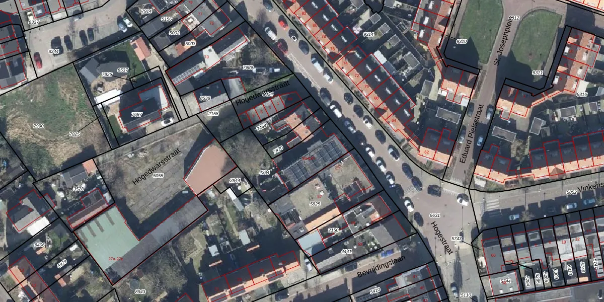 Het perceel waarop Hogestraat 63-c staat heeft een oppervlakte van 555 m². Dit is een groot perceel. De perceeloppervlakte wordt geregistreerd door het Kadaster. Gedetailleerde informatie over de maten van dit perceel kunt u vinden in het rapport Kadastrale kaart met maatvoering van Hogestraat 63-c.