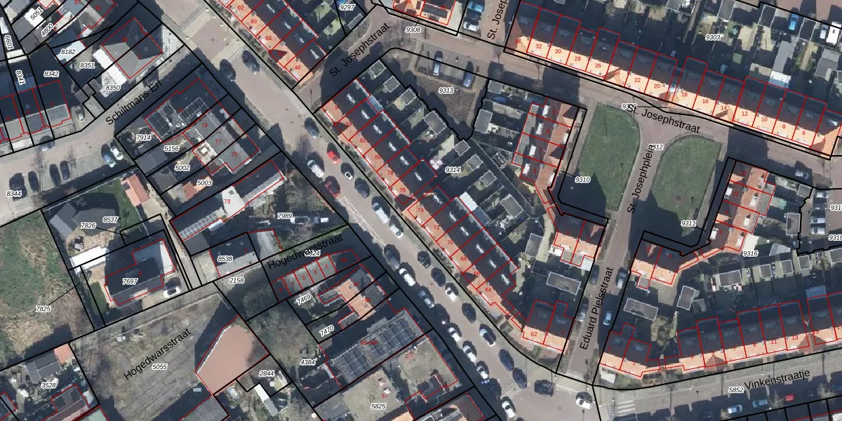 Hogestraat 74 is gelegen op kadastraal perceel TIE00C9314. Deze kadastrale aanduiding is uniek en wordt gebruikt door het Kadaster om eigendomsrechten en andere zakelijke rechten vast te leggen. Het perceel maakt onderdeel uit van de kadastrale gemeente Tiel.