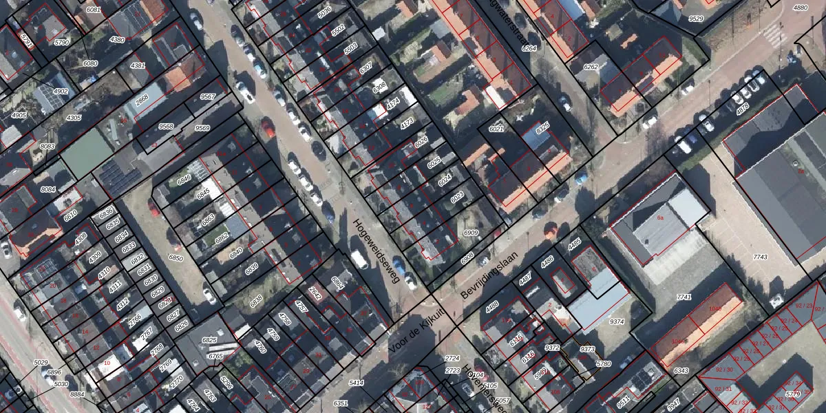 Hogeweidseweg 6 is gelegen op kadastraal perceel TIE00C6024. Deze kadastrale aanduiding is uniek en wordt gebruikt door het Kadaster om eigendomsrechten en andere zakelijke rechten vast te leggen. Het perceel maakt onderdeel uit van de kadastrale gemeente Tiel.