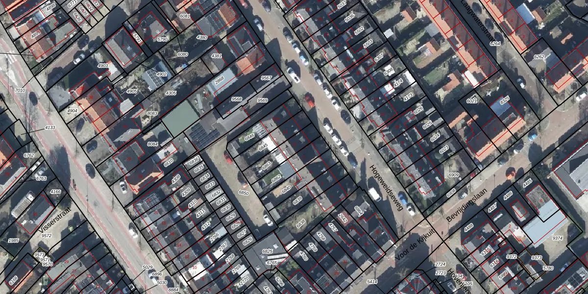 Hogeweidseweg 9 is gelegen op kadastraal perceel TIE00C6863. Deze kadastrale aanduiding is uniek en wordt gebruikt door het Kadaster om eigendomsrechten en andere zakelijke rechten vast te leggen. Het perceel maakt onderdeel uit van de kadastrale gemeente Tiel.