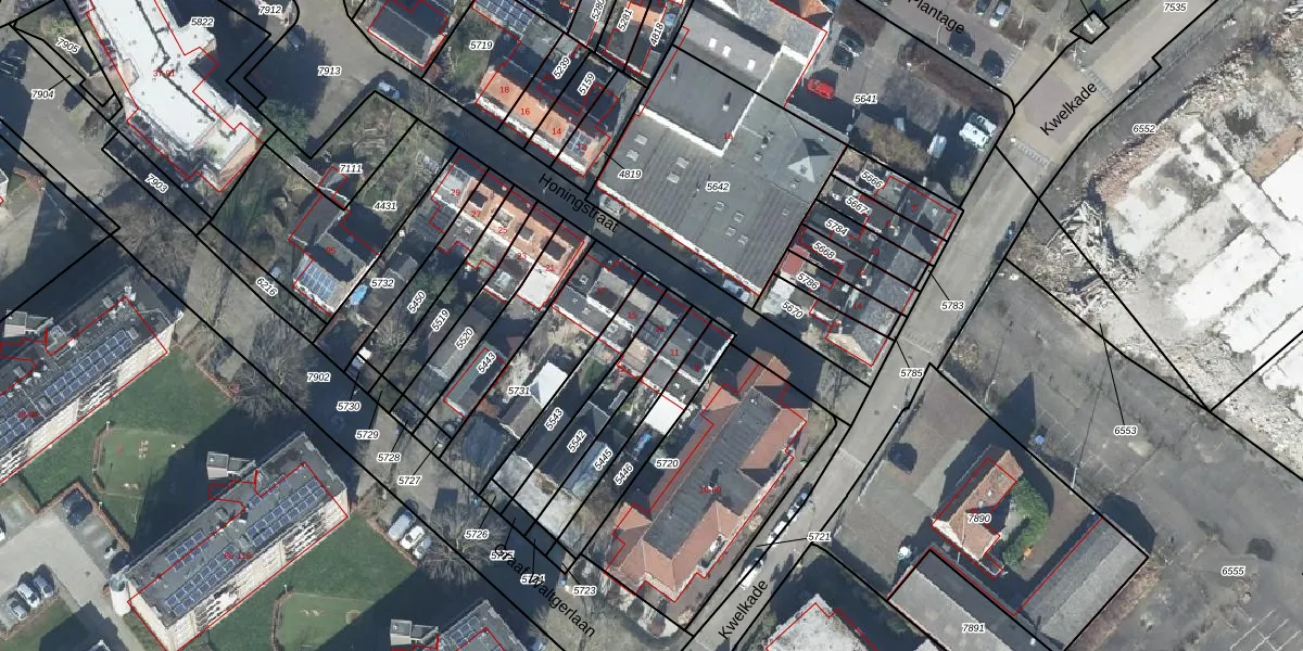 Het perceel waarop Honingstraat 13 staat heeft een oppervlakte van 187 m². Dit is een middelgroot perceel. De perceeloppervlakte wordt geregistreerd door het Kadaster. Gedetailleerde informatie over de maten van dit perceel kunt u vinden in het rapport Kadastrale kaart met maatvoering van Honingstraat 13.