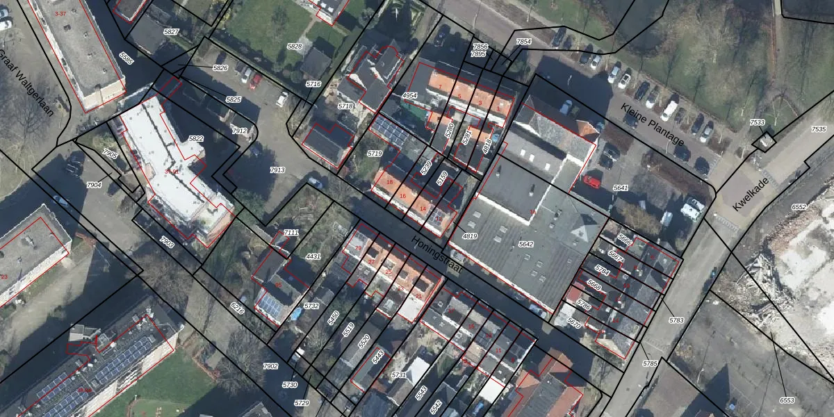 Gebruik de zoekbalk of klik op een perceel voor informatie over de adressen binnen dit perceel.