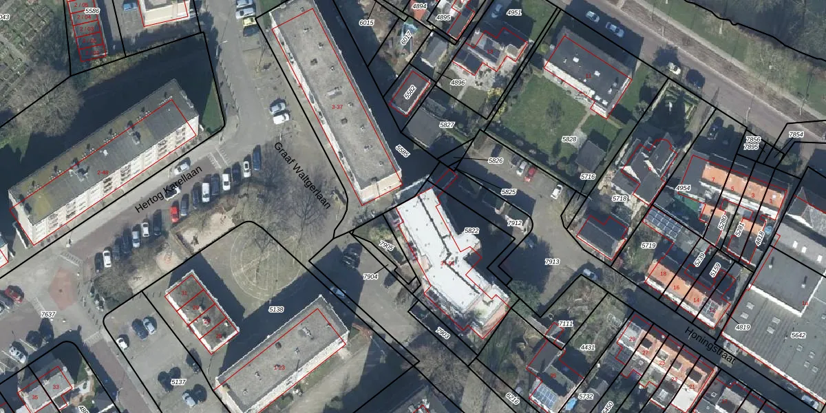 Honingstraat 49 is gelegen op kadastraal perceel TIE00D5822. Deze kadastrale aanduiding is uniek en wordt gebruikt door het Kadaster om eigendomsrechten en andere zakelijke rechten vast te leggen. Het perceel maakt onderdeel uit van de kadastrale gemeente Tiel.