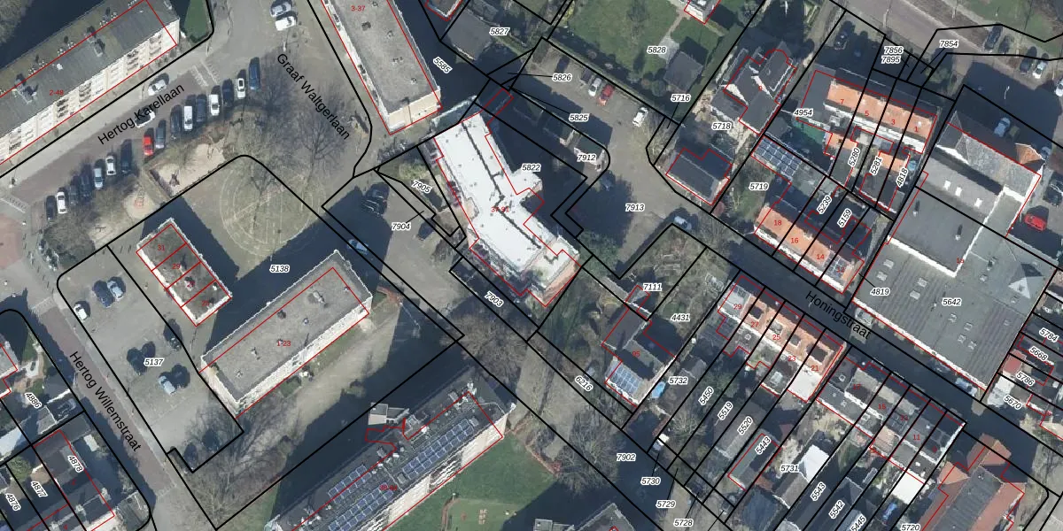 Honingstraat 61 is gelegen op kadastraal perceel TIE00D5822. Deze kadastrale aanduiding is uniek en wordt gebruikt door het Kadaster om eigendomsrechten en andere zakelijke rechten vast te leggen. Het perceel maakt onderdeel uit van de kadastrale gemeente Tiel.