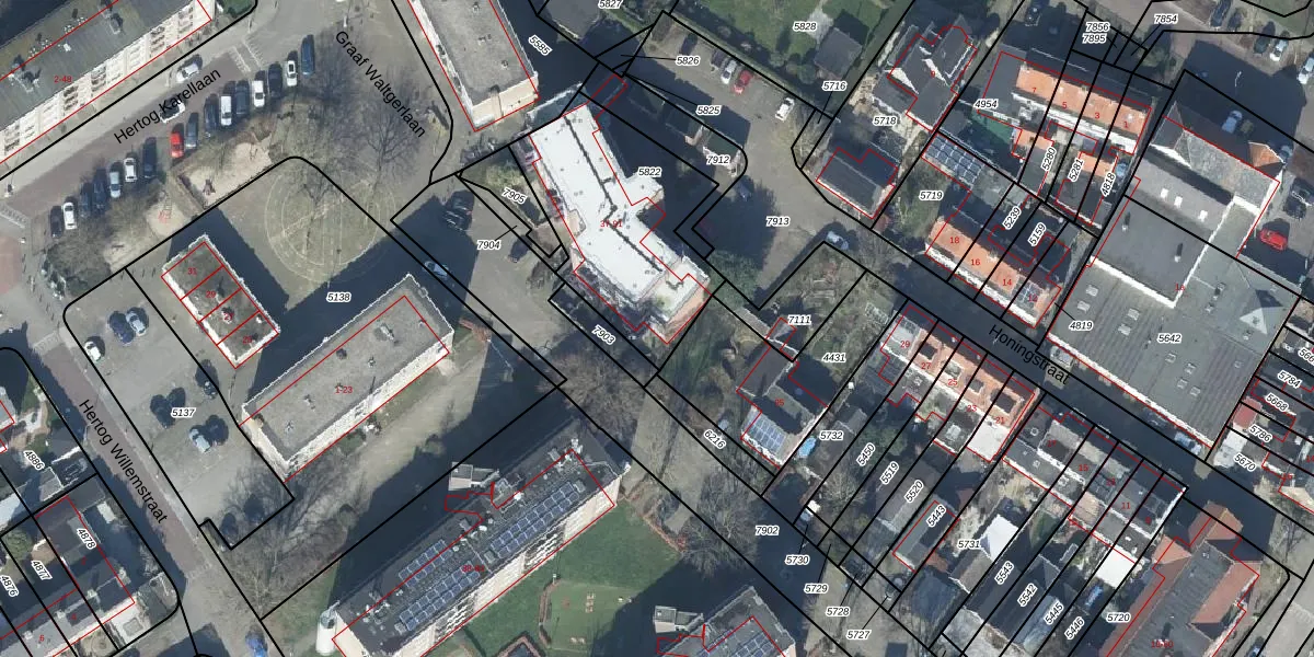 Honingstraat 79 is gelegen op kadastraal perceel TIE00D5822. Deze kadastrale aanduiding is uniek en wordt gebruikt door het Kadaster om eigendomsrechten en andere zakelijke rechten vast te leggen. Het perceel maakt onderdeel uit van de kadastrale gemeente Tiel.