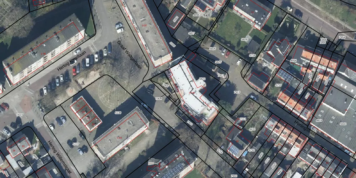 Het perceel waarop het adres ligt is TIE00-D-5822. De afkorting 'TIE00' staat voor kadastrale gemeente Tiel. Het perceel is 740 m² groot. Dat is kleiner dan de gemiddelde perceeloppervlakte in Tiel, dat op 1549,84 m² ligt. Het kleinste perceel in de kadastrale gemeente is 0 m² groot. De grootste perceeloppervlakte is 26,3 ha. Op het perceel zijn 28 adressen aanwezig. De laatste wijziging in het de Basisregistratie Kadaster (BRK) was op 10-12-2021.
