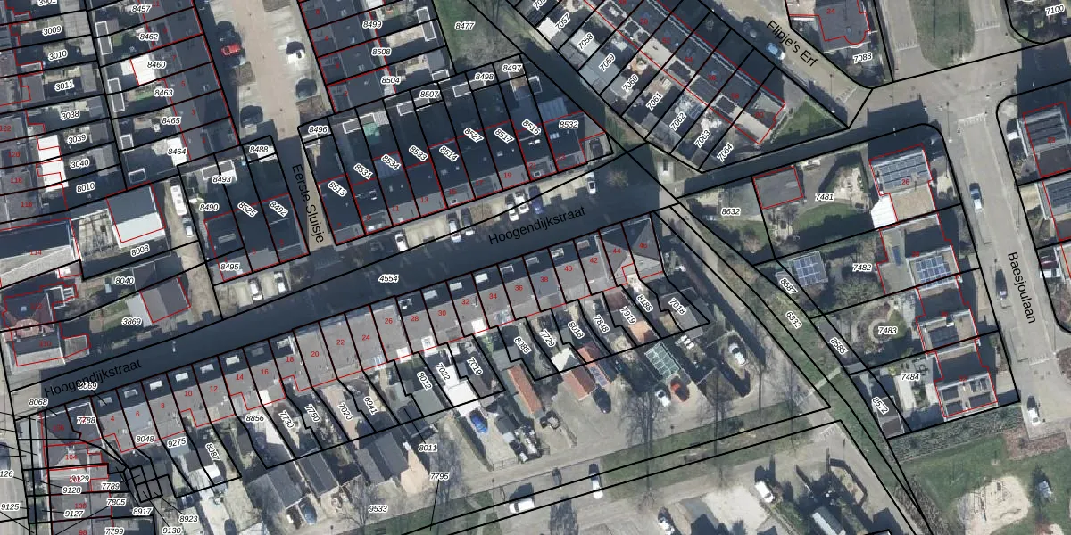 Het perceel waarop Hoogendijkstraat 38 staat heeft een oppervlakte van 120 m². Dit is een middelgroot perceel. De perceeloppervlakte wordt geregistreerd door het Kadaster. Gedetailleerde informatie over de maten van dit perceel kunt u vinden in het rapport Kadastrale kaart met maatvoering van Hoogendijkstraat 38.