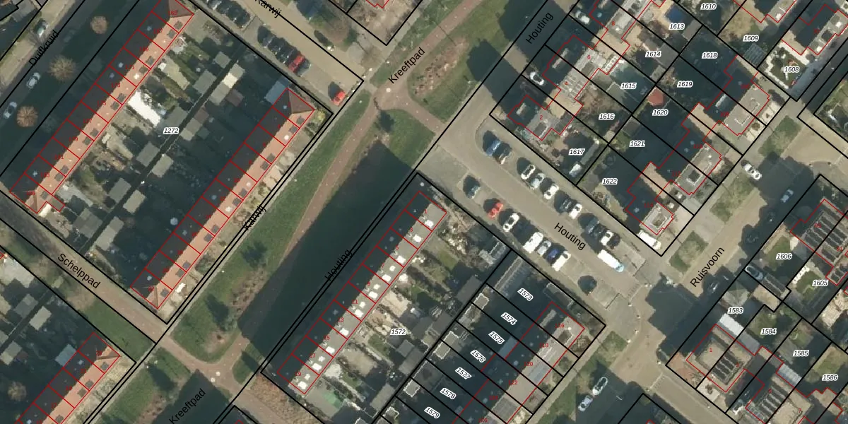 Houting 1 is gelegen op kadastraal perceel TIE00K1572. Deze kadastrale aanduiding is uniek en wordt gebruikt door het Kadaster om eigendomsrechten en andere zakelijke rechten vast te leggen. Het perceel maakt onderdeel uit van de kadastrale gemeente Tiel.