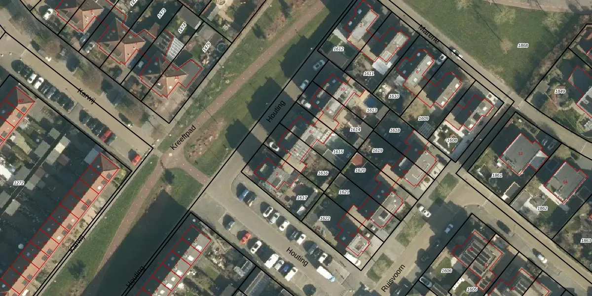 Het perceel waarop Houting 4 staat heeft een oppervlakte van 238 m². Dit is een middelgroot perceel. De perceeloppervlakte wordt geregistreerd door het Kadaster. Gedetailleerde informatie over de maten van dit perceel kunt u vinden in het rapport Kadastrale kaart met maatvoering van Houting 4.