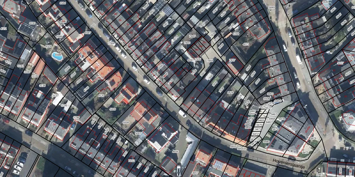Hovenierslaantje 16 is gelegen op kadastraal perceel TIE00C7936. Deze kadastrale aanduiding is uniek en wordt gebruikt door het Kadaster om eigendomsrechten en andere zakelijke rechten vast te leggen. Het perceel maakt onderdeel uit van de kadastrale gemeente Tiel.