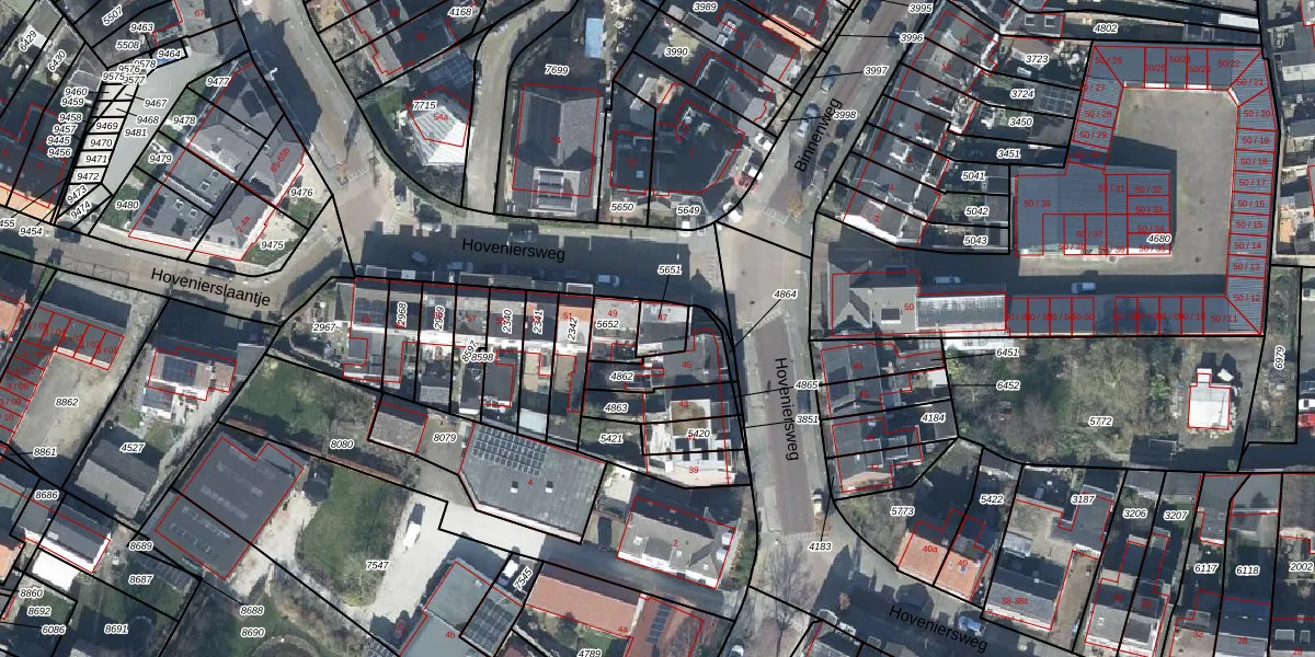Hoveniersweg 47 is gelegen op kadastraal perceel TIE00C5651. Deze kadastrale aanduiding is uniek en wordt gebruikt door het Kadaster om eigendomsrechten en andere zakelijke rechten vast te leggen. Het perceel maakt onderdeel uit van de kadastrale gemeente Tiel.