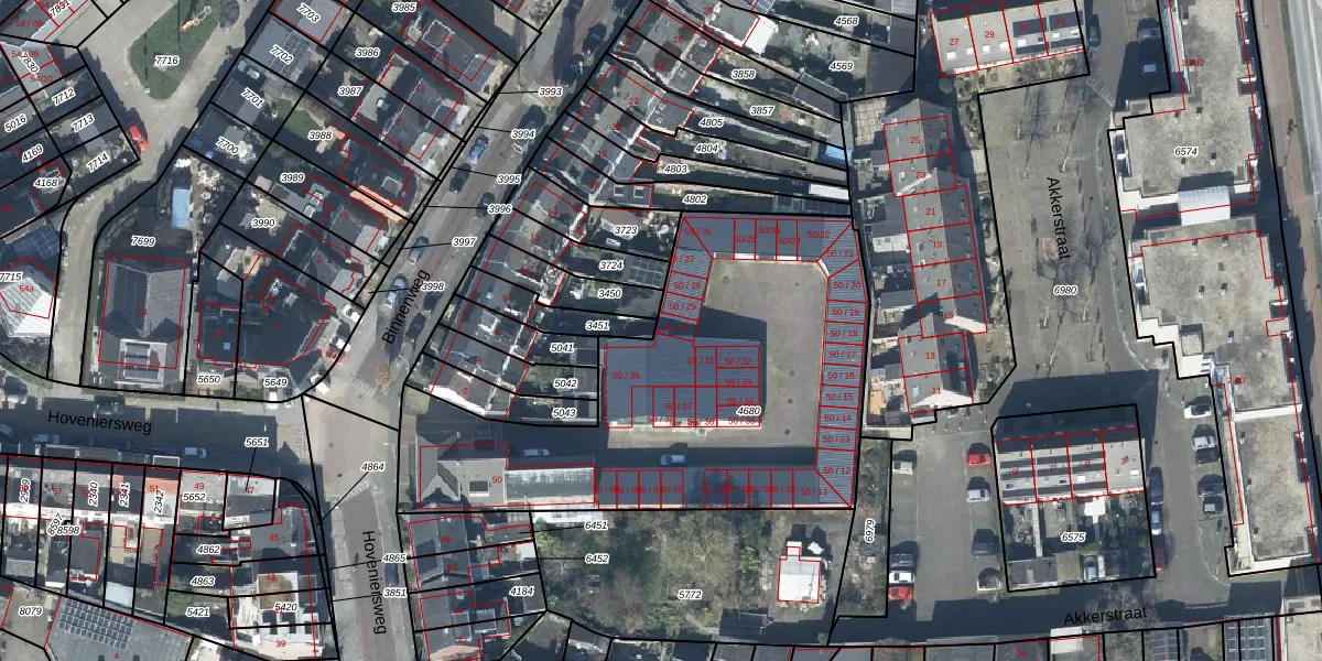 Hoveniersweg 50-30 is gelegen op kadastraal perceel TIE00C4680. Deze kadastrale aanduiding is uniek en wordt gebruikt door het Kadaster om eigendomsrechten en andere zakelijke rechten vast te leggen. Het perceel maakt onderdeel uit van de kadastrale gemeente Tiel.