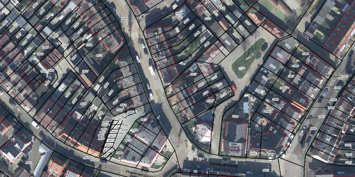 Gebruik de zoekbalk of klik op een perceel voor informatie over de adressen binnen dit perceel.