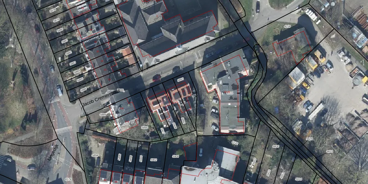 Jacob Cremerstraat 8 is gelegen op kadastraal perceel TIE00C5893. Deze kadastrale aanduiding is uniek en wordt gebruikt door het Kadaster om eigendomsrechten en andere zakelijke rechten vast te leggen. Het perceel maakt onderdeel uit van de kadastrale gemeente Tiel.