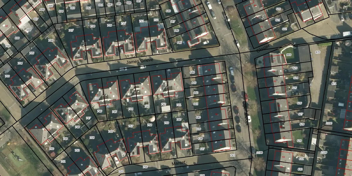 James Grieve 1 is gelegen op kadastraal perceel TIE00K741. Deze kadastrale aanduiding is uniek en wordt gebruikt door het Kadaster om eigendomsrechten en andere zakelijke rechten vast te leggen. Het perceel maakt onderdeel uit van de kadastrale gemeente Tiel.