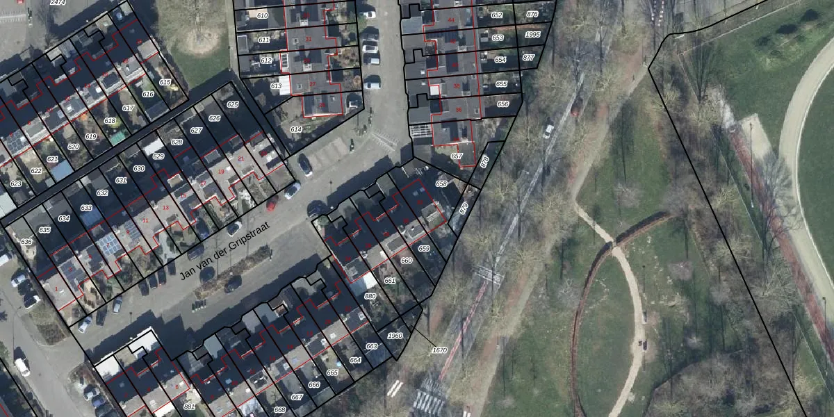 Het perceel waarop Jan van der Gripstraat 32 staat heeft een oppervlakte van 227 m². Dit is een middelgroot perceel. De perceeloppervlakte wordt geregistreerd door het Kadaster. Gedetailleerde informatie over de maten van dit perceel kunt u vinden in het rapport Kadastrale kaart met maatvoering van Jan van der Gripstraat 32.