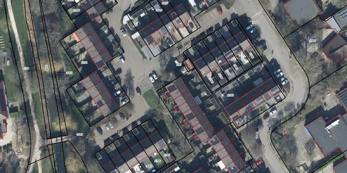 Het perceel waarop Jan van Ghelcenstraat 13 staat heeft een oppervlakte van 4018 m². Dit is een zeer groot perceel. De perceeloppervlakte wordt geregistreerd door het Kadaster. Gedetailleerde informatie over de maten van dit perceel kunt u vinden in het rapport Kadastrale kaart met maatvoering van Jan van Ghelcenstraat 13.