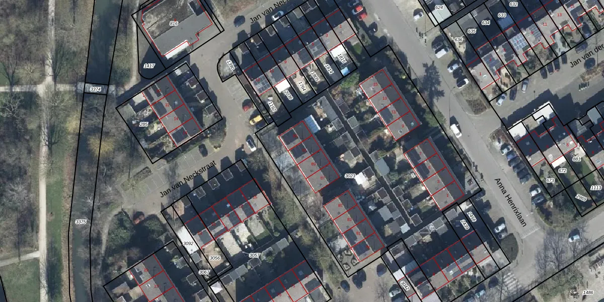 Het perceel waarop Jan van Ghelcenstraat 91 staat heeft een oppervlakte van 3525 m². Dit is een zeer groot perceel. De perceeloppervlakte wordt geregistreerd door het Kadaster. Gedetailleerde informatie over de maten van dit perceel kunt u vinden in het rapport Kadastrale kaart met maatvoering van Jan van Ghelcenstraat 91.