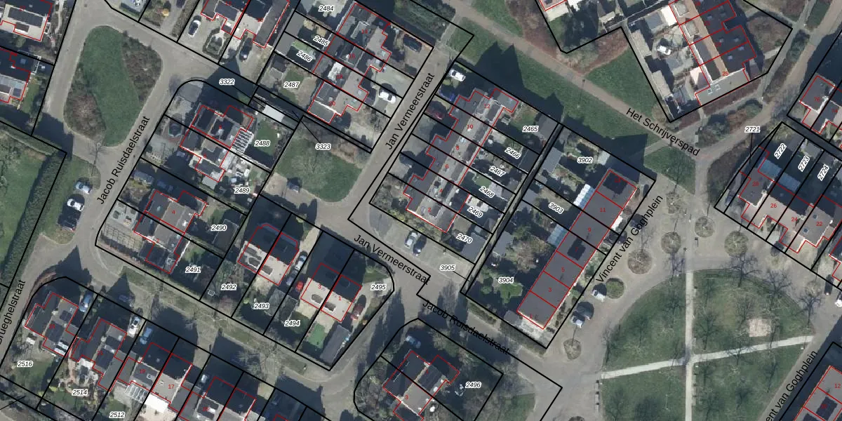 Het perceel waarop Jan Vermeerstraat 2 staat heeft een oppervlakte van 250 m². Dit is een middelgroot perceel. De perceeloppervlakte wordt geregistreerd door het Kadaster. Gedetailleerde informatie over de maten van dit perceel kunt u vinden in het rapport Kadastrale kaart met maatvoering van Jan Vermeerstraat 2.