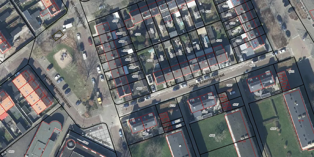 Janus Erasmiusstraat 16 is gelegen op kadastraal perceel TIE00D4701. Deze kadastrale aanduiding is uniek en wordt gebruikt door het Kadaster om eigendomsrechten en andere zakelijke rechten vast te leggen. Het perceel maakt onderdeel uit van de kadastrale gemeente Tiel.