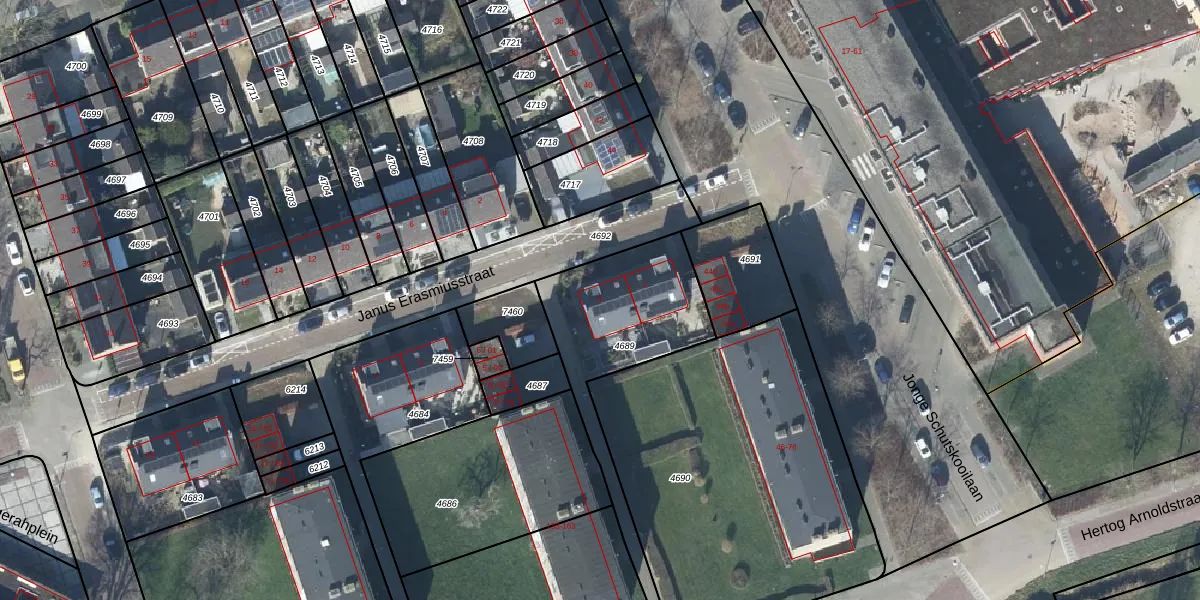 Het perceel waarop Janus Erasmiusstraat 3 staat heeft een oppervlakte van 620 m². Dit is een groot perceel. De perceeloppervlakte wordt geregistreerd door het Kadaster. Gedetailleerde informatie over de maten van dit perceel kunt u vinden in het rapport Kadastrale kaart met maatvoering van Janus Erasmiusstraat 3.