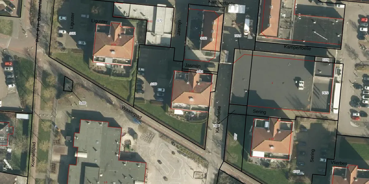Het perceel waarop Jasmijn 16 staat heeft een oppervlakte van 1578 m². Dit is een zeer groot perceel. De perceeloppervlakte wordt geregistreerd door het Kadaster. Gedetailleerde informatie over de maten van dit perceel kunt u vinden in het rapport Kadastrale kaart met maatvoering van Jasmijn 16.