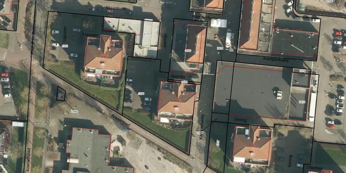 Het perceel waarop Jasmijn 2 staat heeft een oppervlakte van 1578 m². Dit is een zeer groot perceel. De perceeloppervlakte wordt geregistreerd door het Kadaster. Gedetailleerde informatie over de maten van dit perceel kunt u vinden in het rapport Kadastrale kaart met maatvoering van Jasmijn 2.