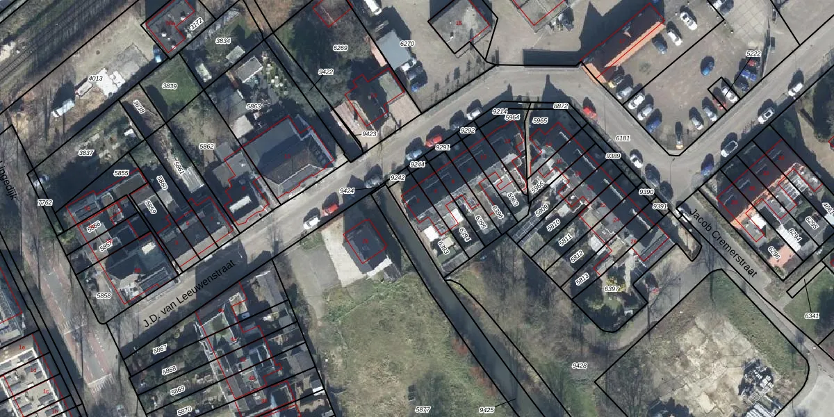 Gebruik de zoekbalk of klik op een perceel voor informatie over de adressen binnen dit perceel.