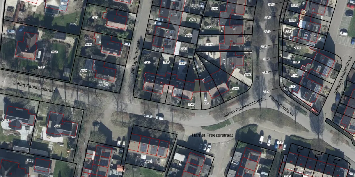 Gebruik de zoekbalk of klik op een perceel voor informatie over de adressen binnen dit perceel.