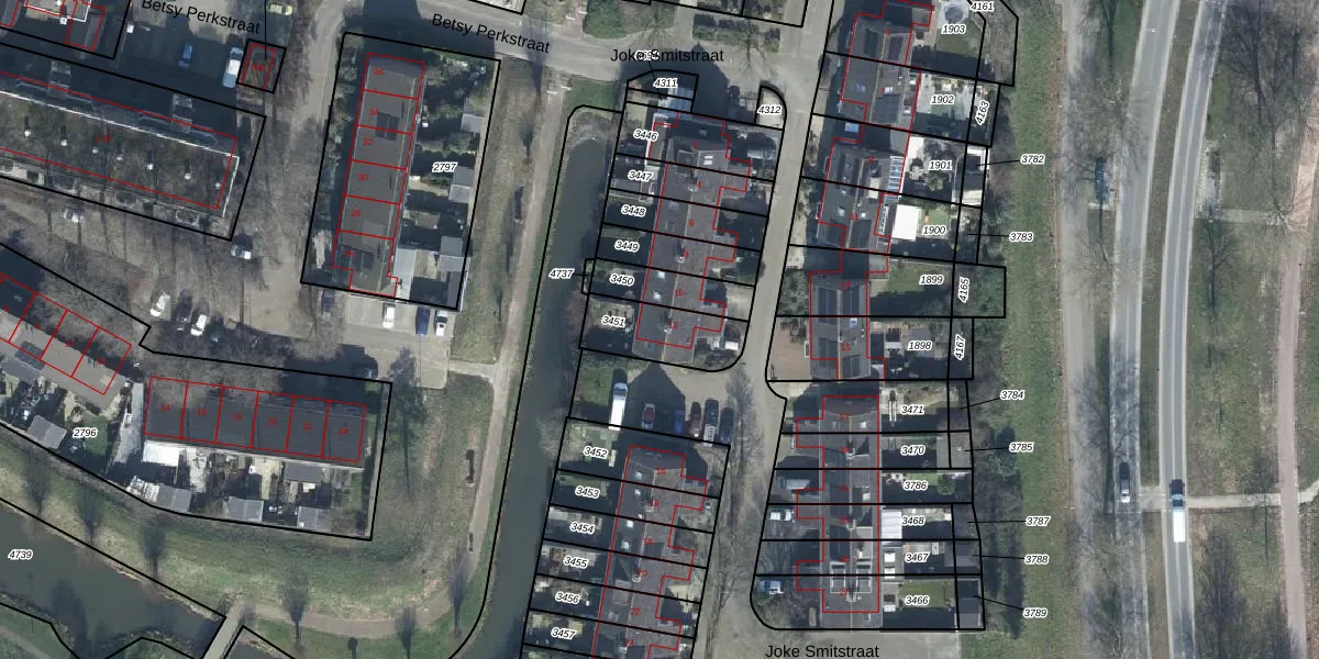 Het perceel waarop Joke Smitstraat 12 staat heeft een oppervlakte van 192 m². Dit is een middelgroot perceel. De perceeloppervlakte wordt geregistreerd door het Kadaster. Gedetailleerde informatie over de maten van dit perceel kunt u vinden in het rapport Kadastrale kaart met maatvoering van Joke Smitstraat 12.