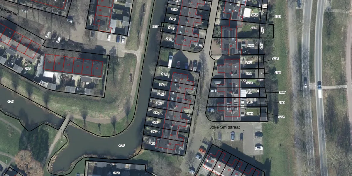 Joke Smitstraat 16 is gelegen op kadastraal perceel TIE00H3453. Deze kadastrale aanduiding is uniek en wordt gebruikt door het Kadaster om eigendomsrechten en andere zakelijke rechten vast te leggen. Het perceel maakt onderdeel uit van de kadastrale gemeente Tiel.