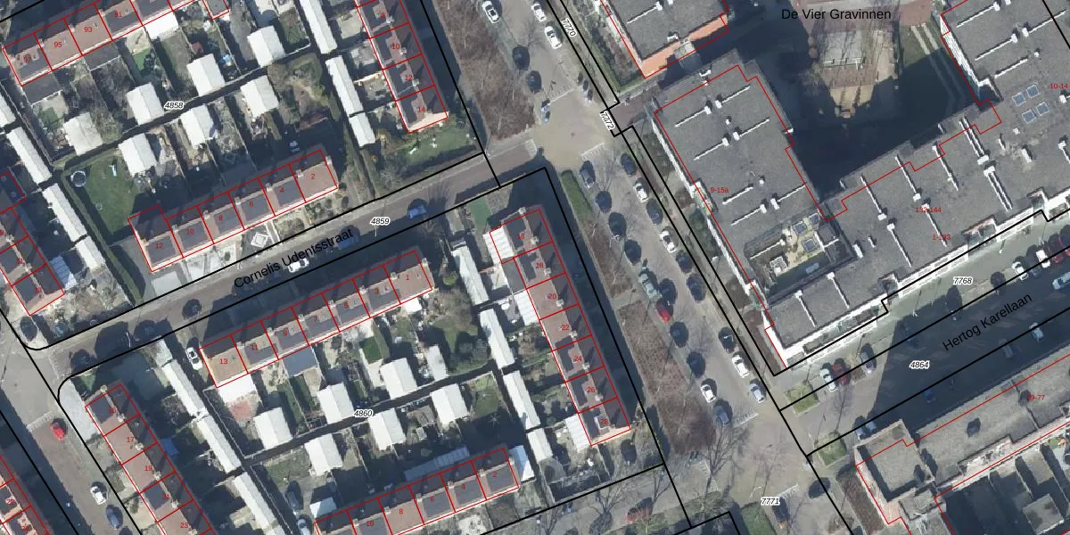 Het perceel waarop het adres ligt is TIE00-D-4860. De afkorting 'TIE00' staat voor kadastrale gemeente Tiel. Het perceel is met 5590 m² relatief groot. Het gemiddelde ligt in de kadastrale gemeente Tiel op 1549,84 m². De grootste perceeloppervlakte in de kadastrale gemeente is 26,3 ha. De kleinste oppervlakte bedraagt 0 m². Op het perceel zijn 27 adressen aanwezig. De huidige grenzen van het perceel zijn digitaal in de Basisregistratie Kadaster (BRK) geregistreerd op 06-04-2004.