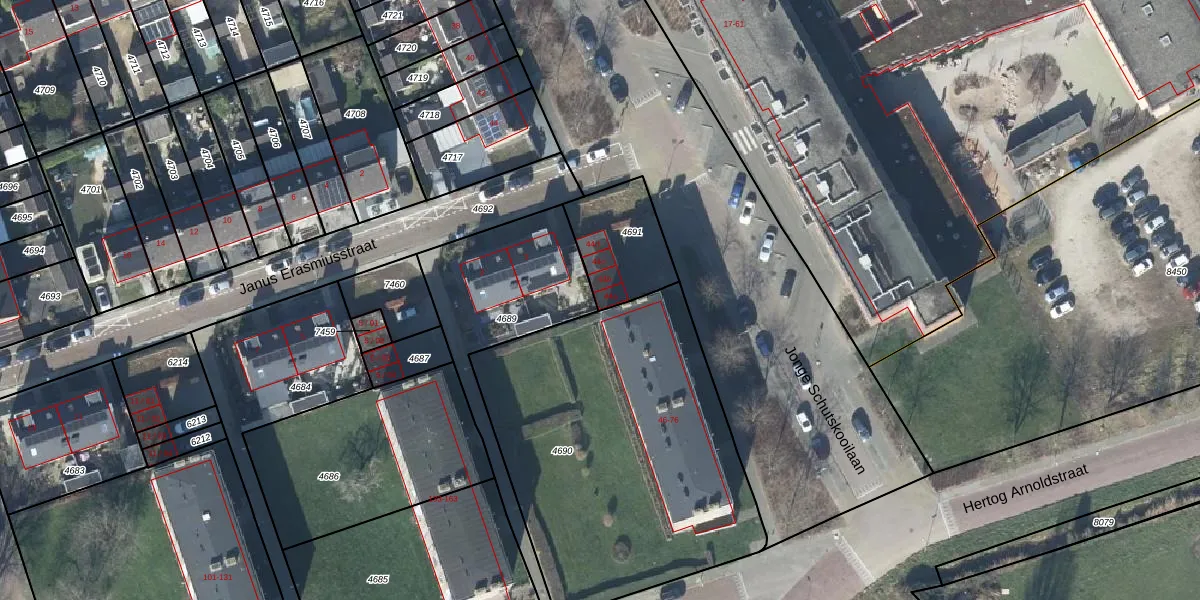 Het perceel waarop het adres ligt is TIE00-D-4691. De afkorting 'TIE00' staat voor kadastrale gemeente Tiel. De gemiddelde perceelgrootte in Tiel is 1549,84 m². Dit perceel is kleiner: de perceeloppervlakte bedraagt 268 m². Het kleinste perceel in de kadastrale gemeente is 0 m² groot. De grootste perceeloppervlakte is 26,3 ha. Op het perceel zijn 4 adressen aanwezig. De huidige grenzen van het perceel zijn digitaal in de Basisregistratie Kadaster (BRK) geregistreerd op 06-04-2004.