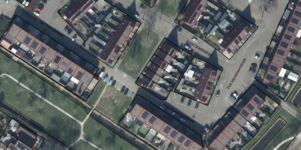 Jozef Israëlsstraat 28 is gelegen op kadastraal perceel TIE00H4121. Deze kadastrale aanduiding is uniek en wordt gebruikt door het Kadaster om eigendomsrechten en andere zakelijke rechten vast te leggen. Het perceel maakt onderdeel uit van de kadastrale gemeente Tiel.