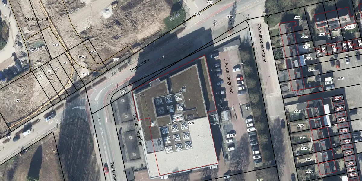 J.S. de Jongplein 7 is gelegen op kadastraal perceel TIE00D7538. Deze kadastrale aanduiding is uniek en wordt gebruikt door het Kadaster om eigendomsrechten en andere zakelijke rechten vast te leggen. Het perceel maakt onderdeel uit van de kadastrale gemeente Tiel.